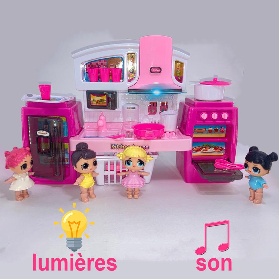 Cet ensemble de cuisine miniature est idéal pour les enfants à partir de 3 ans. Il comprend une cuisine équipée de lumières et de sons réalistes, ainsi que 4 adorables poupées pour enrichir l’expérience de jeu. Les portes du réfrigérateur, du four et des placards s’ouvrent pour plus d’interactivité. Avec ses couleurs vives et ses multiples fonctionnalités, cet ensemble encourage l’imagination, le jeu de rôle et la coordination des mains et des yeux.
