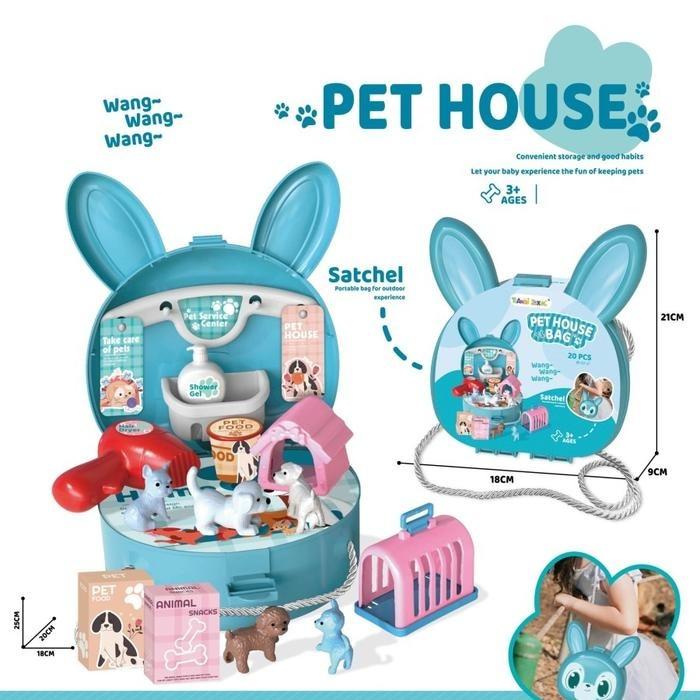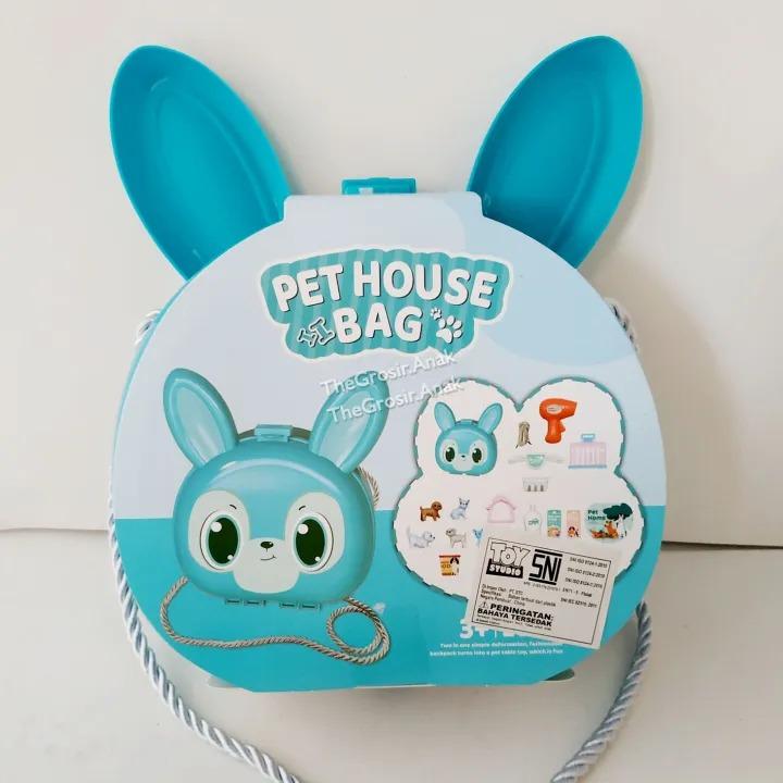 La Pet House Hand Bag est une adorable mallette en forme de tête d’animal, conçue pour permettre aux enfants d’imaginer un véritable petit monde d’animaux de compagnie. Elle contient 20 accessoires variés : animaux, nourriture, jouets, et objets de soin. L’enfant peut s’amuser à nourrir, laver et s’occuper de ses animaux tout en développant son imagination et son sens des responsabilités. Une fois le jeu terminé, tout se range facilement dans la boîte qui se transforme en sac à main pratique à emporter partout.