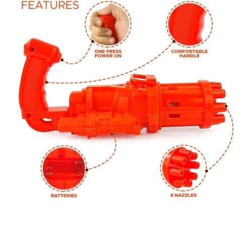 أمتع أطفالك بلحظات لعب مليئة بالمرح مع مسدس الفقاعات الكهربائي بتصميم جاتلينج. يحتوي على 8 فتحات قادرة على إنتاج مئات الفقاعات الملونة في الدقيقة، مما يجذب انتباه الأطفال ويزيد من متعتهم. سهل الاستخدام ويعمل بـ 3 بطاريات AA (غير مشمولة). يمكن استخدامه أيضًا كمروحة صغيرة بعد إزالة رأس المسدس، ليمنح نسيمًا منعشًا بعد اللعب. مصنوع من مواد آمنة وصديقة للبيئة وخالية من المواد السامة.