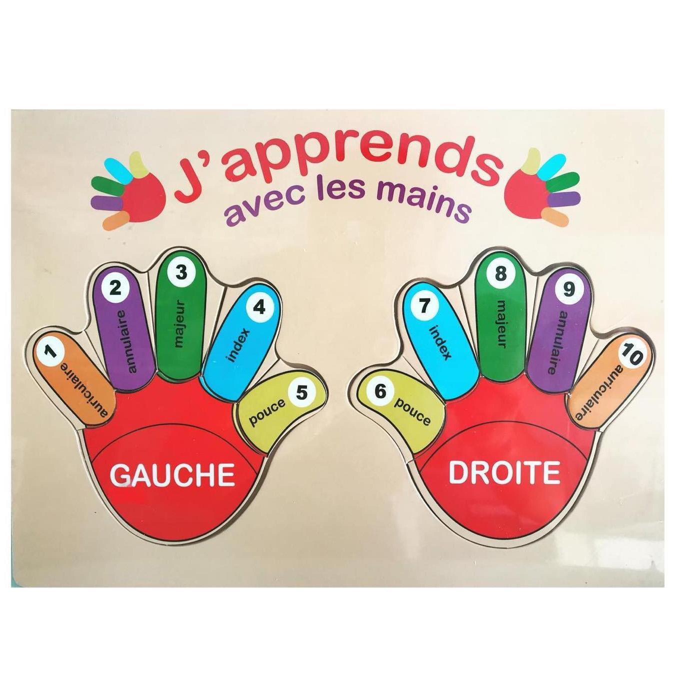 Ce puzzle en bois de 12 pièces sur le thème des mains et des doigts est idéal pour aider les enfants à reconnaître leurs doigts, apprendre à compter et mémoriser les couleurs. Grâce à ses pièces faciles à manipuler, il permet aux petits d’améliorer leur coordination et leur motricité fine tout en s’amusant.